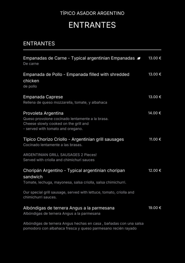 5.5/10the menú was not identical to the menú in the syte here. The steak was very bad.