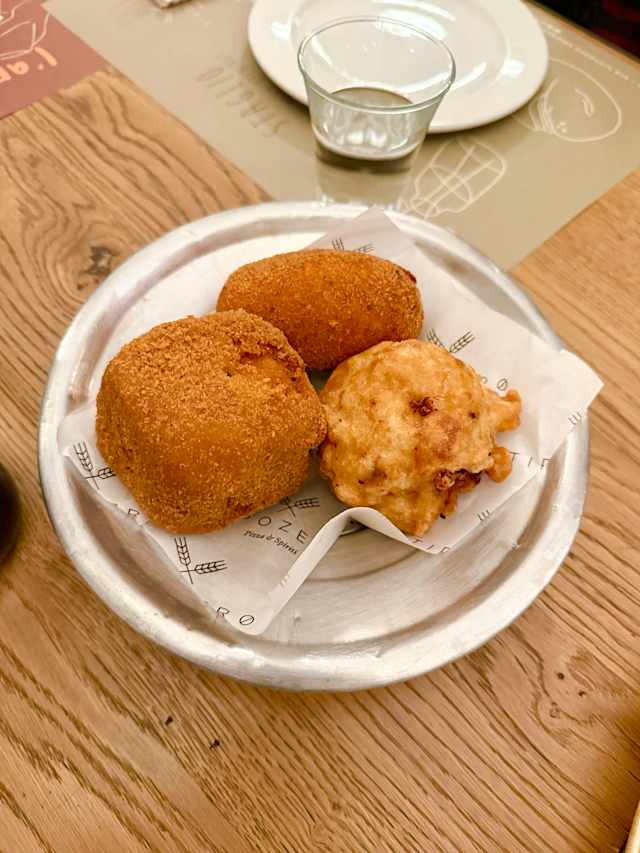 Arancino al ragù, frittatina cacio e pepe, crocchè di patate