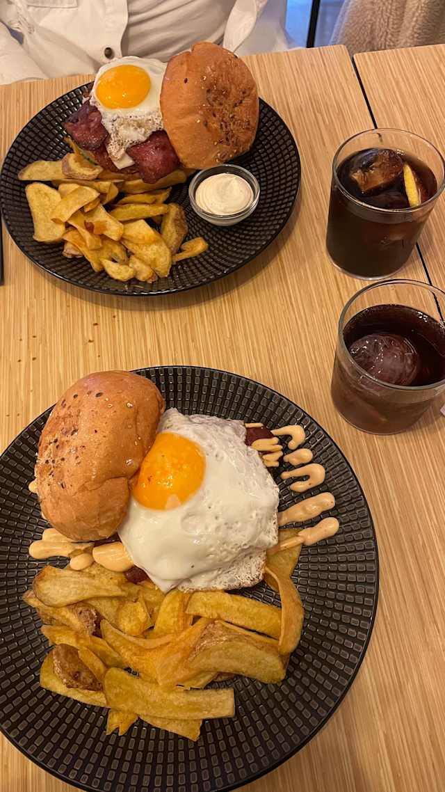 - (bacon, cebolla caramelizada, huevo y nuestra salsa casera tiquismiquis).