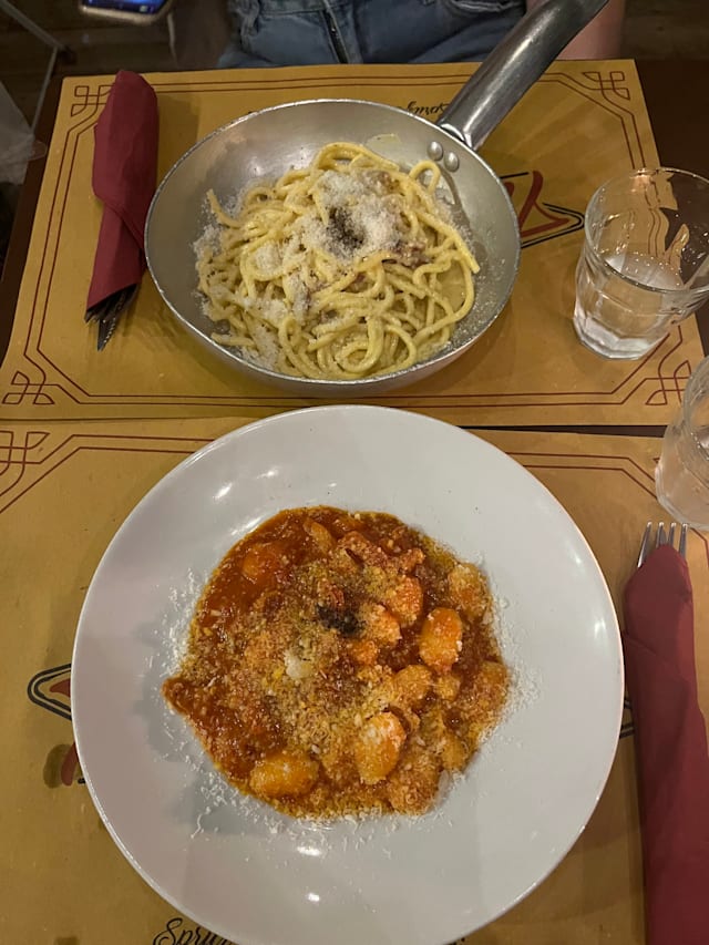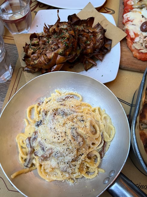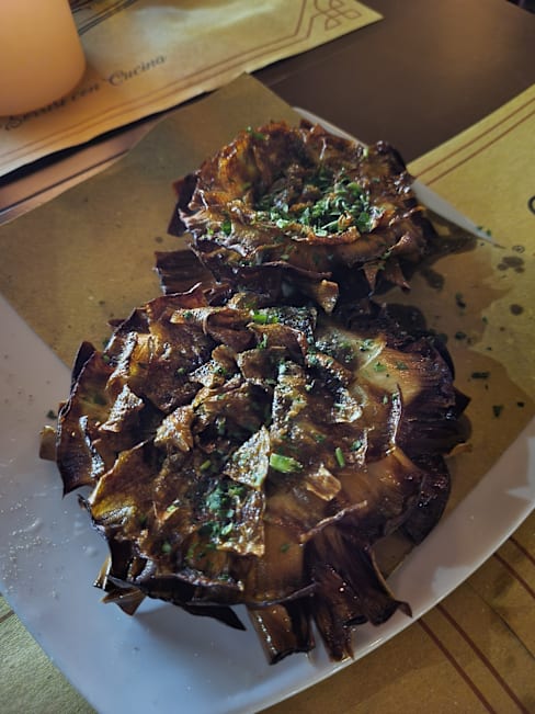 5.5/10Friendly staff, food was good (but nothing impressive), the thing that bothered me most was that we were seated on the left side terrace, first table to the door (in January) even though all the other tables were free. Table was for 2 but quite small and all of this didn’t feel inviting at all - it felt like “just eat and go” kind of experience. I don’t recommend it for dinner, especially not for your last night in Rome!