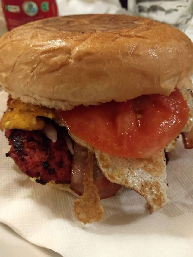- Hamburger, bacon, cheddar, uova e salse a scelta