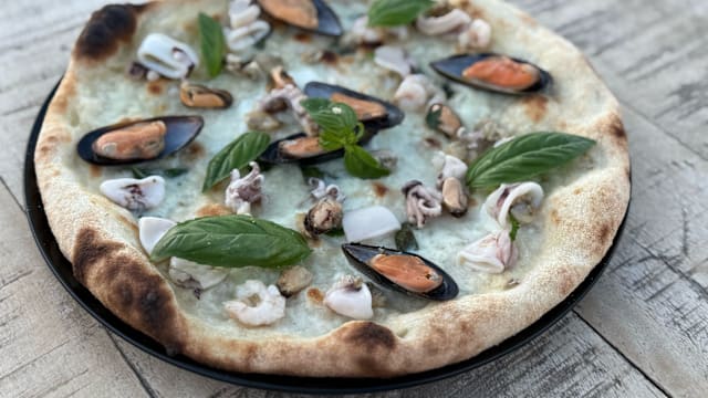 Crudo di mare, ostriche, gambero rosso, scampi, frutti rossi.