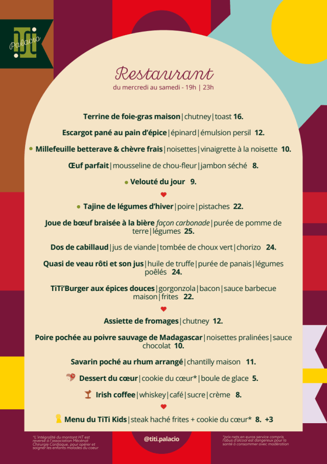 FrenchTraditional cuisineEuropeanBirthdayCreativeDesignGood for familiesLunchTraditionalTrendyWinter terraceWith friendsNut allergiesPeanut allergyVegetarian dishesAmerican ExpressChildren's menuDog-FriendlyWheelchair AccessibleWifi