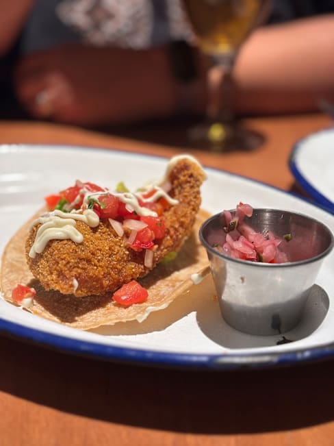 4/10Rotten fish in the fish tacos, that they didn’t refund. Been to Mexico several times, food was mediocre and the quality wasn’t up to the mark. The drinks were good.