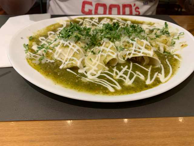 10/10Authentic and amazing Mexican food. The tacos and enchiladas are very good! Great drinks too.