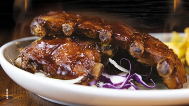 Marinati per 10 ore con spezie e salsa bbq e accompagnato da patatine fritte e insalata mista