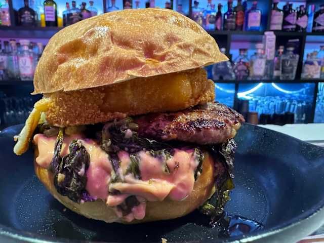 - Hamburger di salsiccia, provola, nduja, melanzane grigliate e cipolla caramellata