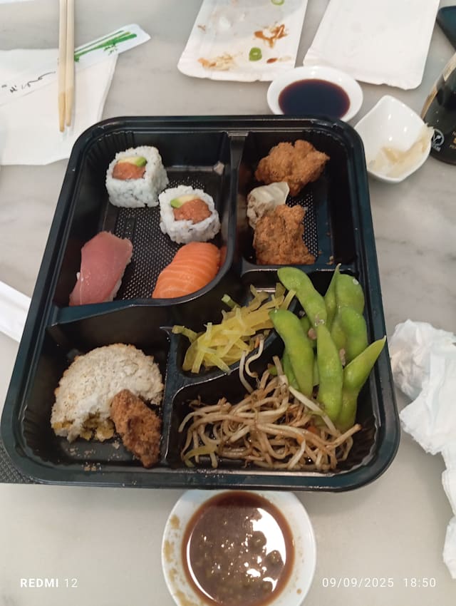 5/10Nice staff. Small place with no ambiance. No style furniture. Quality of food seemed low and taste was lower than average. Not worth the money also Eaten 20times better sushi elsewhere Honestly. No real cutlery and plates everything on take away sets. I don't know where the good rating comes from. Sorry, cause staff was really nice but overall disappointing