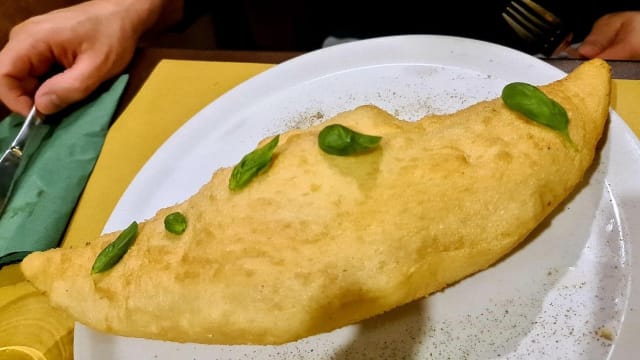 Montanara served with san marzano DOP tomato, fiordilatte from monti latteria sorrentina and parmesan