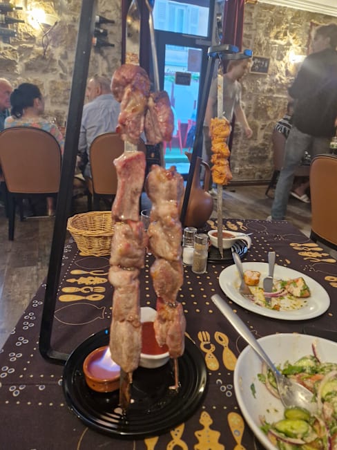 Dear Iryna, thank you for your feedback about us and your visit ???????????? About "mtsvadi" - we'd like to tell you, that the meat for "mtsvadi" we buy in a special store and a special part - the neck, so it is normal that "mtsvadi"s meat has fat. Thank you again and we'll wait you again ☺️????????????????????