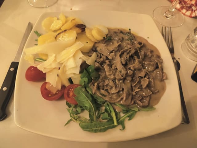 10/10Perfect spot to have dinner after visiting the Vatican. Bottle of wine, oxtail stew w mash potatoes and amatriciana pasta was the perfect meal for two and cost €65. The place is lively and the waiters were helpful. You'll love it!