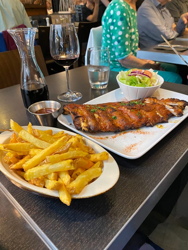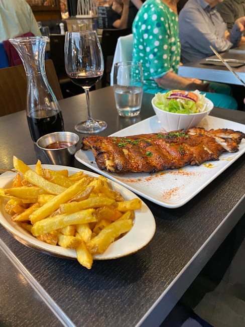 8/10Solid as reviews said. We had burger ribs and the salmon with spaetzel. All good. Full all tables bustling but solid and good comfort food night away from the cream sauces of Alsace.