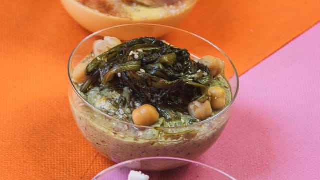 Babaganoush, radicchio in agrodolce, pomodorini e philadelphia vegan
