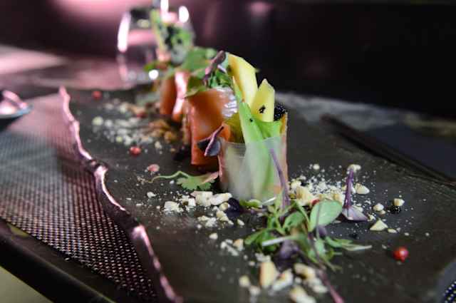 - Tartare di salmone e ikura (uova di salmone), avvolto con salmone