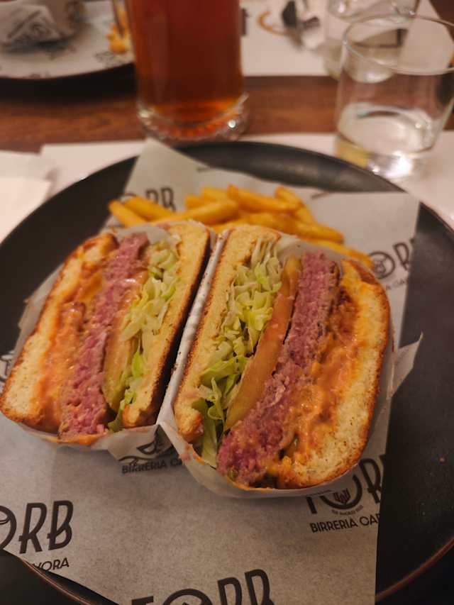 - Hamburger selezione de matteo 180gr, insalata, pomodoro, cheddar, bacon, cipolla croccante, salsa torb