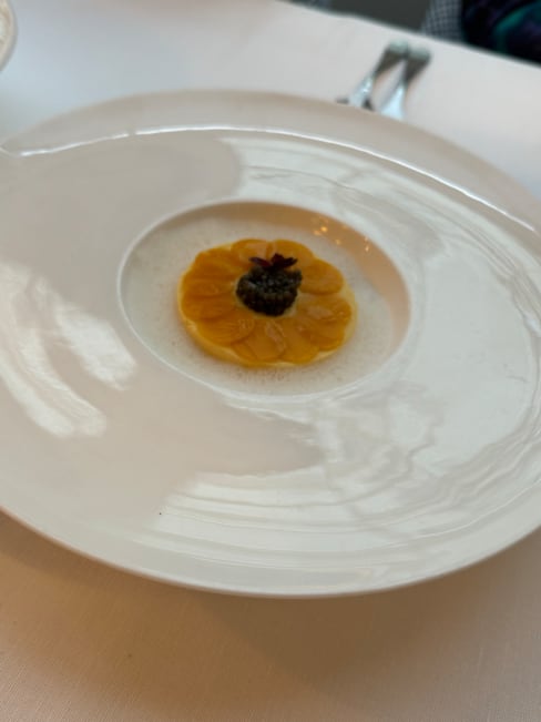 10/10+1Absolutely amazing. We were seated at the chef’s table so we had the pleasure of watching the cooks while enjoying our meal! We did the pre-fix 4 course meal and I couldn’t have loved it more. Every course was remarkable and the service was great. Highly suggest the wine pairing to go along with the meal as well. Once dinner was over, the chef even invited us into the kitchen. If you are in Paris you NEED to visit Tosca!