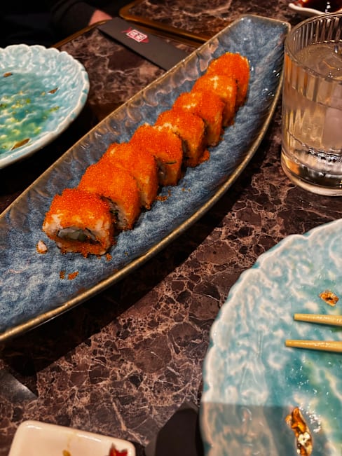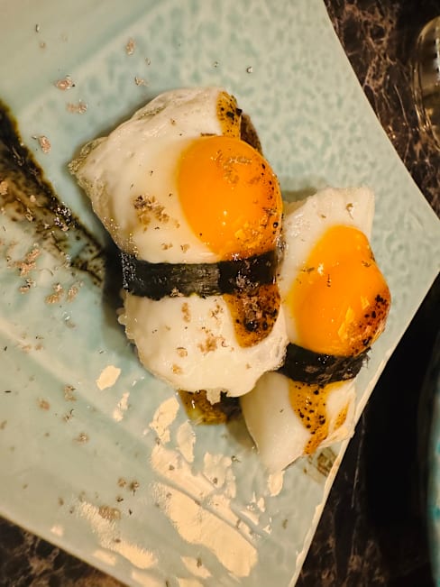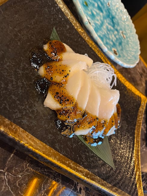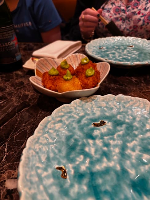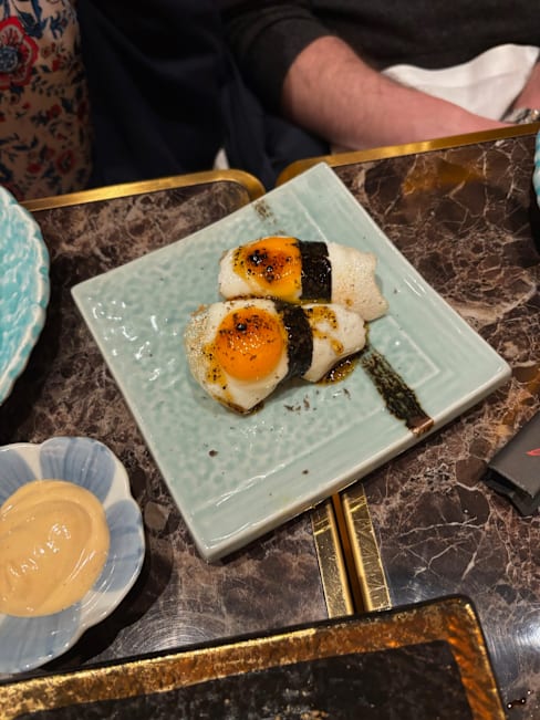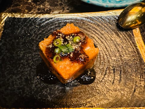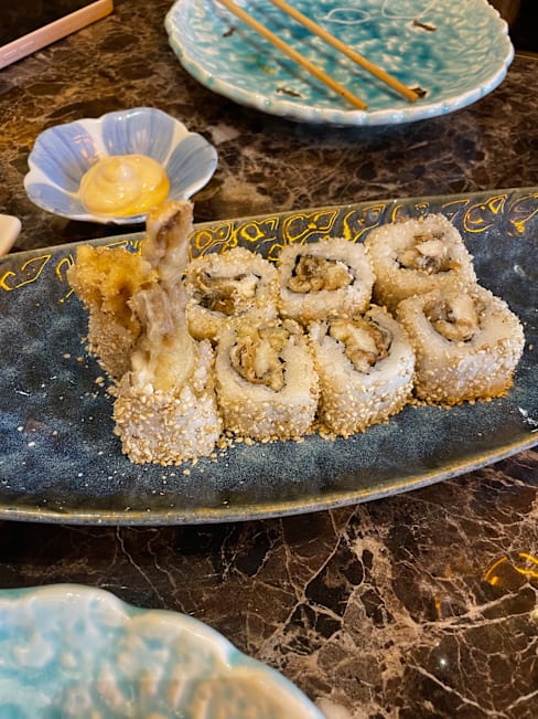 5.5/10We ordered multiple pieces of sushi and a Tonkatsu sandwich. We had high expectations for the soft-shell crab uramaki rolls, but they turned out to be quite dry. They were served with a peanut mayonnaise that was very tasty, but it completely overpowered the flavor of the crab. The California rolls were also less than satisfying; they were dry as well, and on some pieces the avocado had already started to brown. On the other hand, the toro nigiri were absolutely amazing: fresh, buttery, and perfectly balanced. The Tonkatsu sandwich was also outstanding, perfectly crispy and flavourful. Unfortunately, the lady who greeted us at the door was not welcoming at all, which gave us a poor first impression. Thankfully, the gentleman who later looked after us completely turned the evening around; his attentive service and excellent dessert recommendations made all the difference. The desserts he suggested: ginger ice cream with chocolate brownie and raspberry mochi (were truly exquisite).