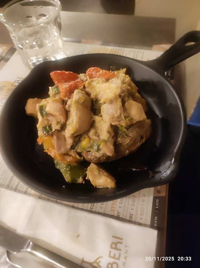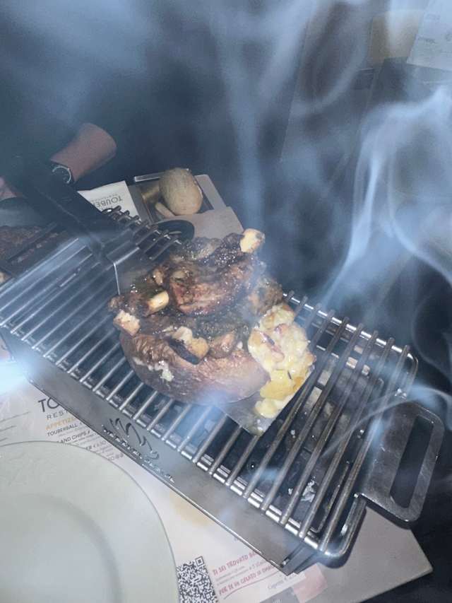 8/10Brought my wife for a date night, trying out a new spot for us thanks to The Fork: Touberi. It’s a place where most of the menu is comprised of potatoes that are baked and filled or covered with various ingredients. Some of the combinations are very inventive and tempting. I had one with truffle that also included a poached egg, as well as trying their special fries (anyone who really knows me knows that I’m a fanatic for potatoes). The truffle and egg covered potato was a very nice and very rich, filling dish. I also had their special potato fries which were quite nice but covered with more mayonnaise than I found tasty. My wife chose their vitello tonnato (called “beef return” for some reason) and found the veal really tender and fresh, but the sauce too heavy on the mayonnaise side. (Little tuna flavor.) She also had a salad with very fresh ingredients. I was going to order a Negroni but the drink menu also listed some specialty cocktails including a Messicano that included not just Mezcal but also a rhubarb liqueur, Chino Vermouth and chocolate bitters. It was an excellent taste, a balance between smoky and sweet — but I thought for the price (€11) it was a very small portion. Our server was quite helpful and pleasant. I was disappointed with the service in one aspect: when I went to pay the bill, the manager was adding things up and gave me a total which I paid. Afterward he gave me a receipt and when I reviewed it I saw the discount on The Fork’s offer should have totaled €18,75 (the food portion was €37,50) but the discount given was €17,50. I decided not to make an issue of a fairly small amount by going back to the cashier but it was a disappointment.Overall we had an enjoyable time but these minor issues of heavy mayonnaise, a skimpy drink and an incorrect discount made it less than ideal.