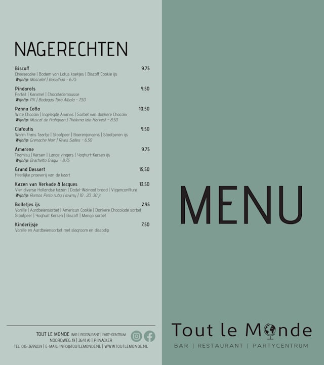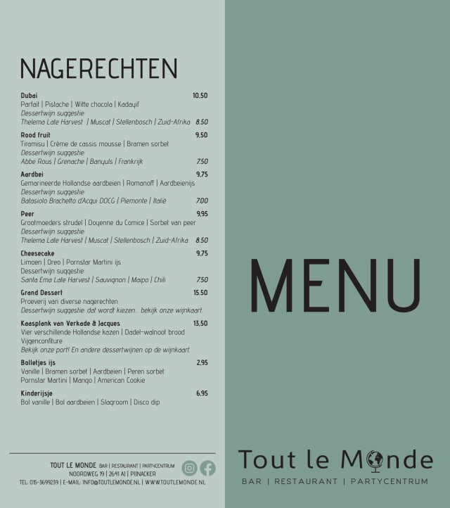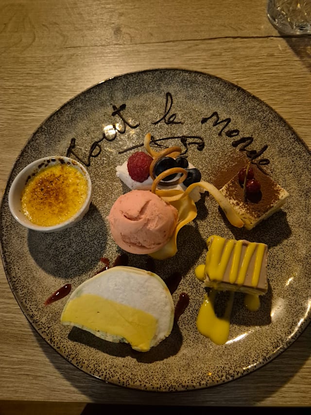9/10Gastronomic experiences are not always bound to eating in fine dining Michelin restaurants, sometimes you get surprised by a local restaurant just around the corner of your house, like we were with Tout le Monde. The quality and diversity of the ingredients chosen by the Chef combine with the colours and the taste is perfect! The sashimi as a starter is actually amazing; actually it is so that you are worried that you just had the best course of the complete menu! so at that point you get worried.... but rest assure it is not the case! The veal cheek was incredibly tender and flavourful. Served on top of a fine julienne with a tone of fresh thyme! The côte de boeuf without the bone was kind of strange in presentation but in taste was absolutely delicious. The service was also very good even though the restaurant was full on that night. We will be back!