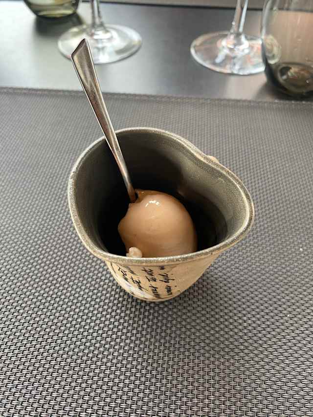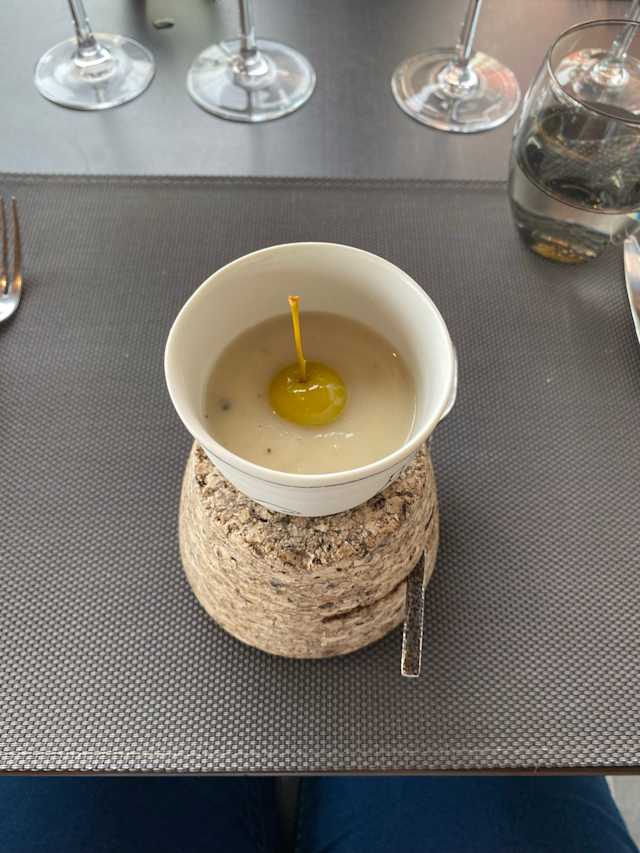 10/10The Menu is excellent with the presentation of every dish trough a drawing :) The mustard butter is delicious and the Wine sorbet is exquisite. The view is beautiful, the Chef is remarquable, the staff very nice and the atmosphere very romantic. A wonderful experience and moment.