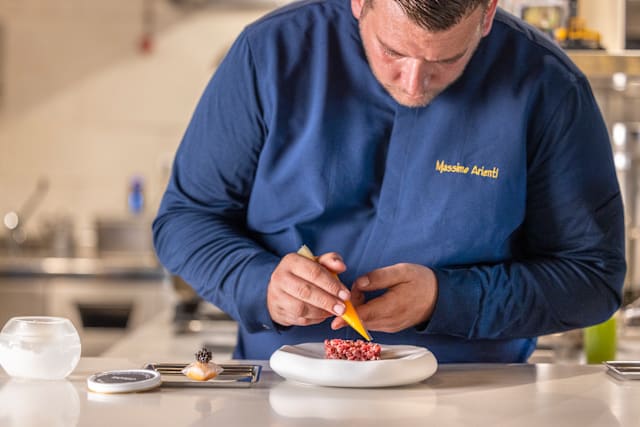 10/10+1Fabulous food, great view into the kitchen, wonderful to see Massimo in his element!