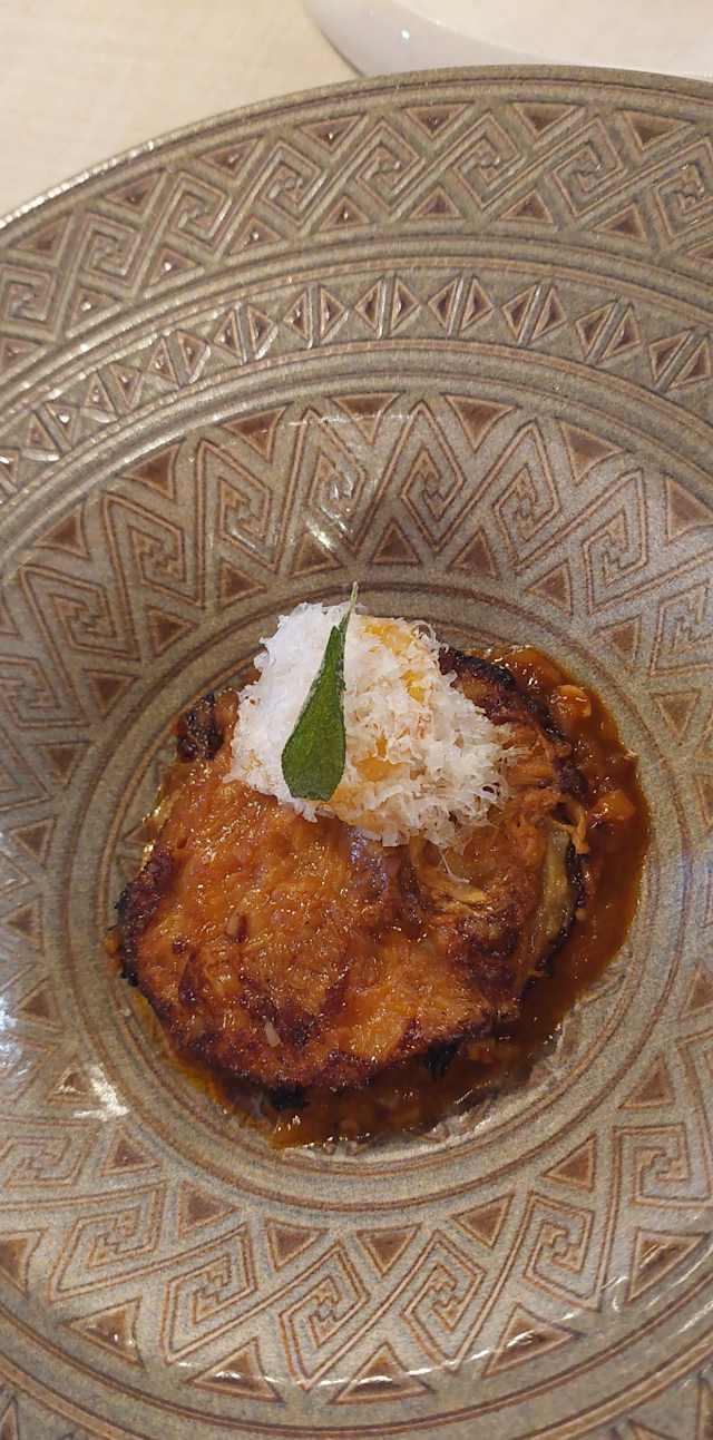 - Berenjena, aceitunas, tomate, piñones, albahaca