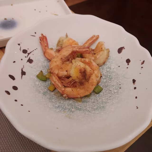 - Scampi e gambero rosso con salsa wasabi e olio oliva