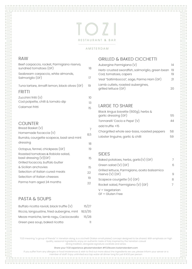 10/10I was there with 2 Californian friends and we loved our evening. Great service, very nice food and the suggested wines to accompany were very appropriate. I would strongly recommend the Best of Tozi (sharing) menu.