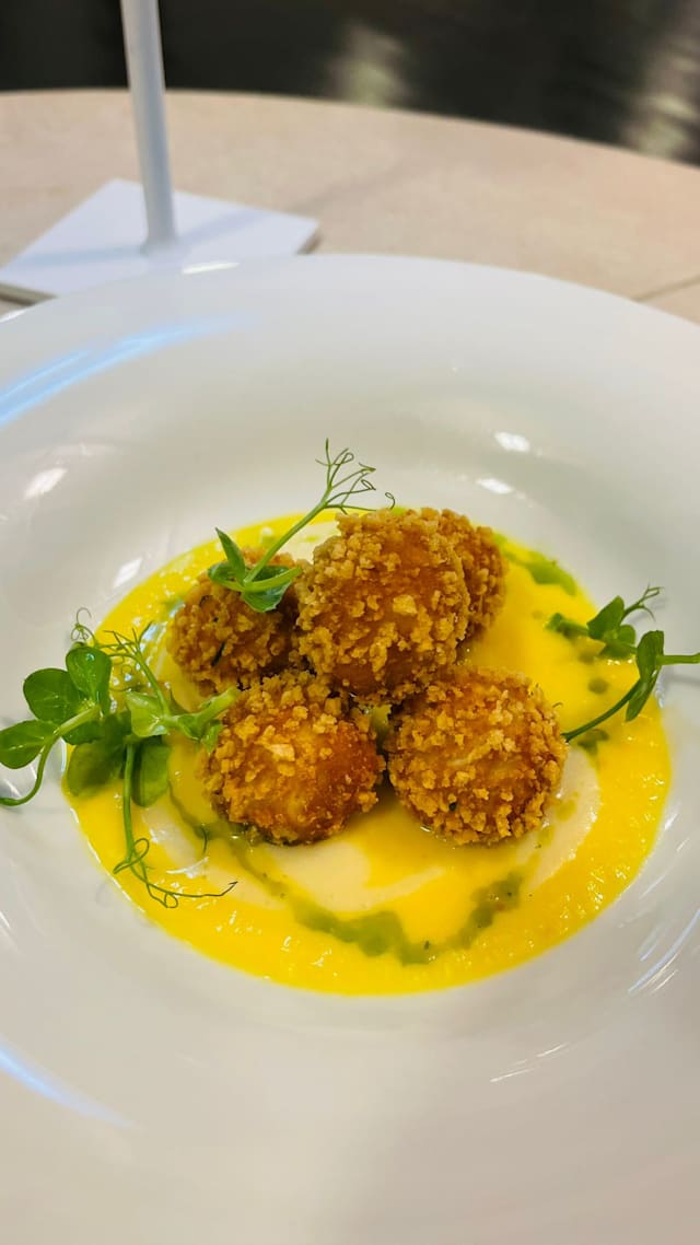 Crema di patate affumicate e olive taggiasche o acqua sala