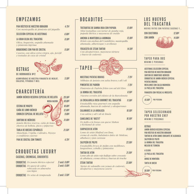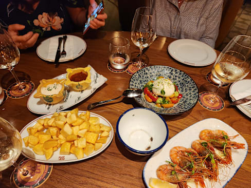 7.5/10They didn't have my reservation that I booked a table 4 days in advance. That is why the hostess tried to put us to the bar table when most of the tables were free when we arrived. They changed food a bit. Patatas braves are more crunchy now, and they serve less, but still good. Canelone de pollo was a bit dry. And I don't know how, but they started a weekend service without rose wine. But anyhow, the waitress was super friendly and professional. The dishes were nice. I liked the most burrate salad and cheese cake (you can order it for two, I was not able to finish cheasecake).