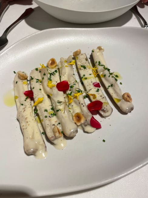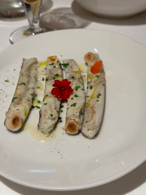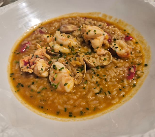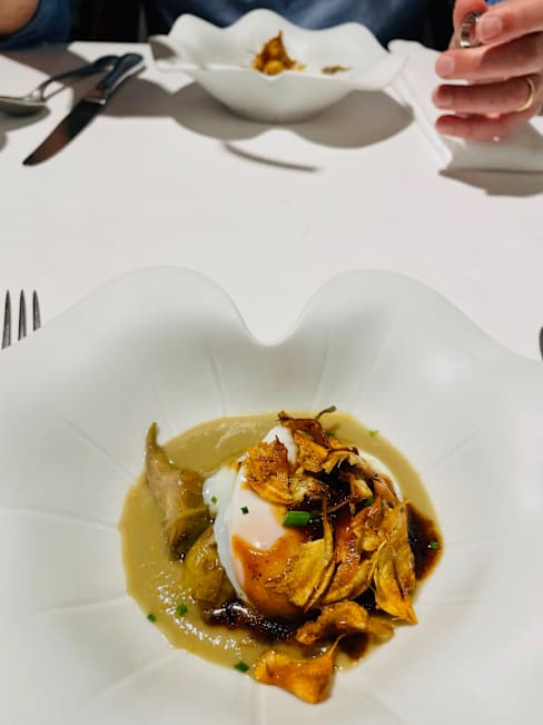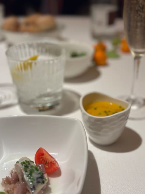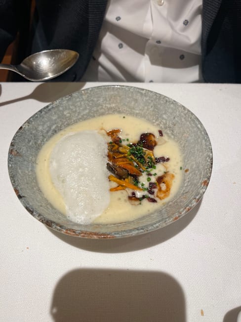 8/10First course we found the Mackerel a bit disappointing and crab bit too salty and lacking in a bit of flavour. The pumpkin soup was nice; clams and mushroom/egg were delicious - top marks! Lamb/fish also great; dessert a bit underwhelming Service is where I feel it was a bit disappointing for an establishment of their supposedly standard / reputation: - Firstly they offer a cava as part of the menu - two of our group do not drink alcohol and no effort was made to offer an alternative. After making a point of this we suggested at the very least they offer a bottle of water which they agreed (but this shouldn’t have been necessary and either it be proactively offered or a soft drink alternative) -The breads were delicious - this is charged additionally which is fine however wasn’t replenished promptly -service was inconsistent - the table next to us were offered hand towels to wipe their hands after eating clams but this wasn’t offered to us -didnt seem v friendly overall
