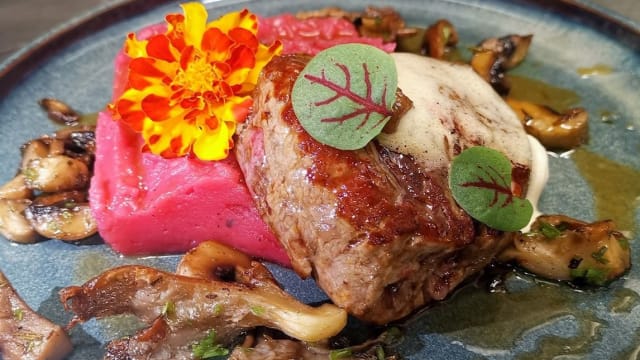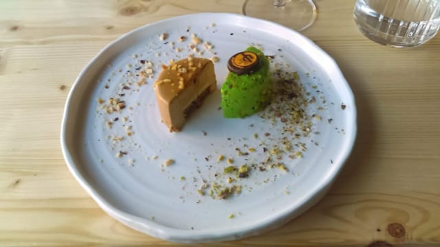 Crosta di pistacchio, mousse di barbabietola