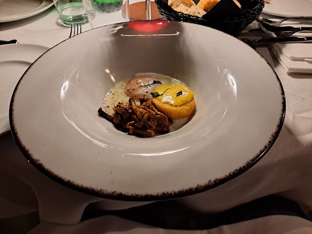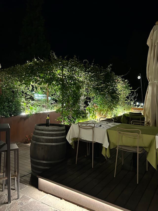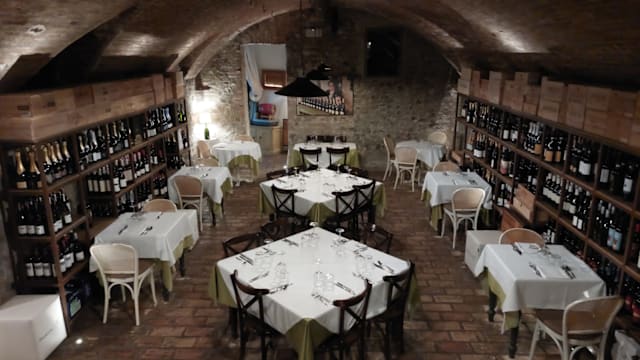 10/10Outstanding setting in centuries old room with warm friendly welcoming staff and excellent typical local cuisine and as it was an enoteca the walls lined with great wine!