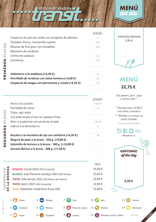 *Este restaurante sólo admite reservas con menús. El restaurante Transit está situado en Figueras, provincia de Gerona, muy cerca del Museo Dalí y del Castillo de Sant Ferrán. Está especializado en cocina mediterránea que busca las raíces en la tradición culinaria catalana. Siempre utiliza produ...