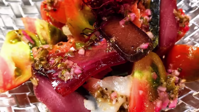 - TRADITIONAL SALAD WITH "MUTXAMEL" TOMATO, LOCAL SALTED SMOKED FISH DRESSED WITH A CAPER SAUCE