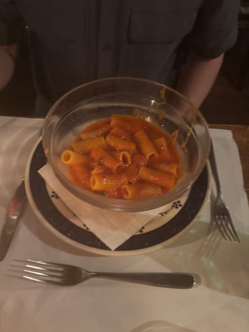 3.5/10Very rude waiter who would not allow us to order multiple dishes. It was our last meal in Italy and we wanted to have a 3 course meal. After the first person ordered he only allowed the second person to order a salad saying it was too much food. When the person tried to politely insist he raised his voice and said too much food again. Later as he kept passing our table, he jokingly nudged the person and asked if she wanted more pasta. He did this twice, it was not funny but he kept trying to make light of it. Being scolded because you want to order food that you are paying for is ridiculous and it ruined the whole meal and our last night. We didn’t leave in order to be polite, but we should have just left the restaurant. The salad was terrible, “Pear and Pecorino salad” but was a little pear and pecorino and a lot of iceberg lettuce with a little carrot and radicchio. The pasta was fine and the steak was good. We will never come back. There are many better places to eat in Florence.