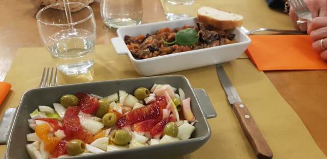 - melenzane fritte in salsa agrodolce con cipolla,olive e sedano