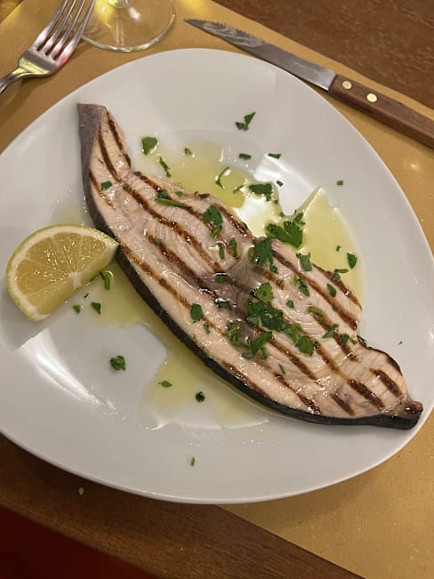 10/10Greeted at the door. When we asked for fish, was shown a showcase of what was available. We chose the sea bass which was grilled perfectly. We also chose an eggplant dish which we all loved. The atmosphere and pace of dinner was just what we were looking for to enjoy with our dear friends. Price was reasonable.