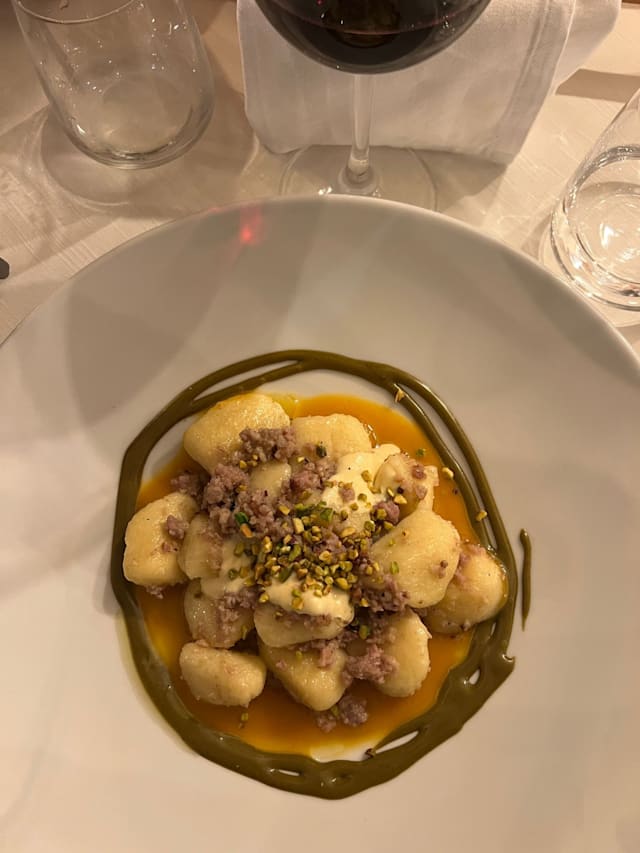 9.5/10All around remarkable. Beautiful view from atop a hill. Good service. Great menu. We all had three courses and different dishes and each was excellent. There were several vegetarian items on the menu, which is rare in Italy. Extensive local wine menu. Spend some time walking around the property afterwards. I am not sure if they spoke English or if there was an English menu as we got by in Italian. The drive up the hill was a bit difficult and I definitely wouldn’t want to go up there is it was snowing.