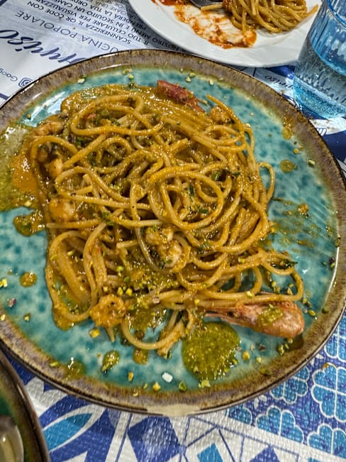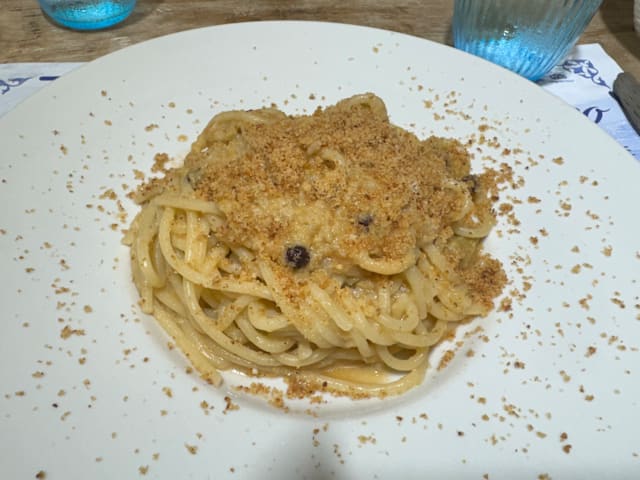 9/10+1Excellent, authentic Sicilian food. We loved the pasta with pistachios! Really good Value. The restaurant is casual and unpretentious, with a local feel. Despite having many tables, the restaurant including the terrace was completely full. In the evening, a warmer, dimmer light inside would make the space feel more inviting. All in all, recommended!