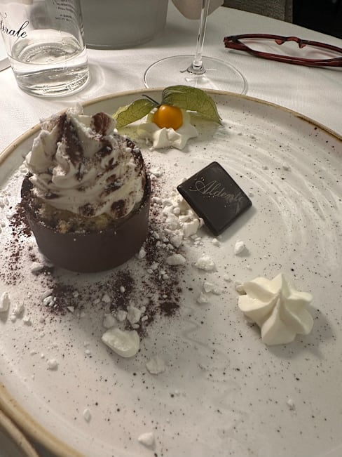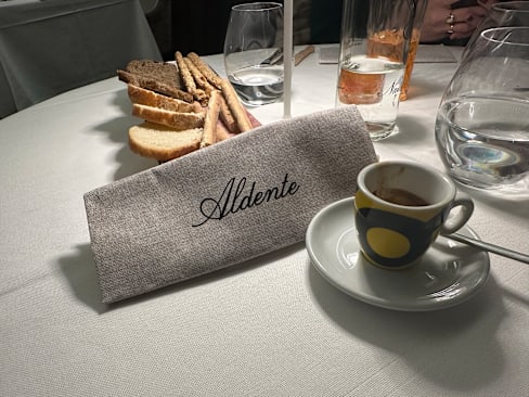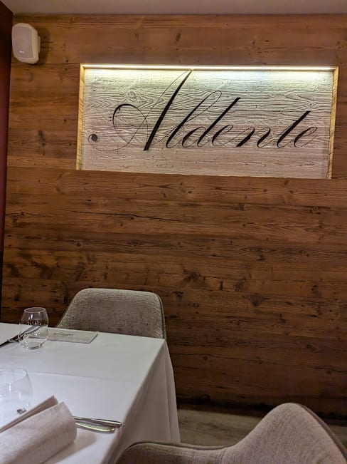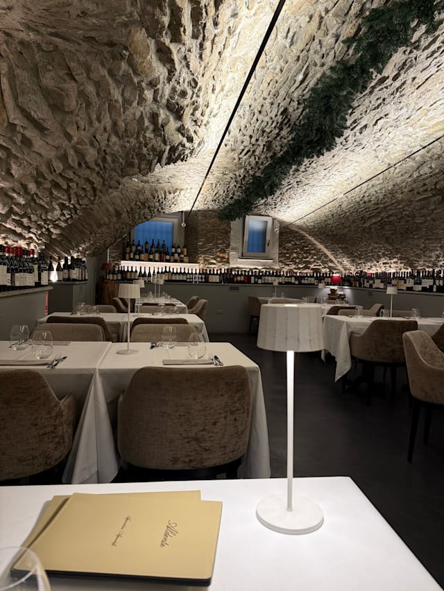 10/10Excellent meal at aldente restaurant. The ‘cave’ room was a special room for a special meal and surrounded by some of the best wine produced in Italy. The wine list itself was huge but also very good value. For food we had scallops, house pasta and venison and it was all delicious. When in Aosta this is the place to eat.