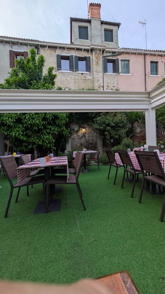 8.5/10The garden setting was perfect for al fresco dining. The waiter was nice but on the bill we were charged for 4 aperitivo but we only had 2 and there was as a 10% service charge in addition to 3 x 2€ conti . We did get the 20% discount offered on the app but ended up being overcharged, the manager did adjust the bill. The good was teally good!