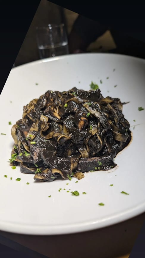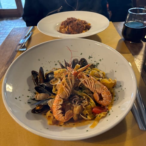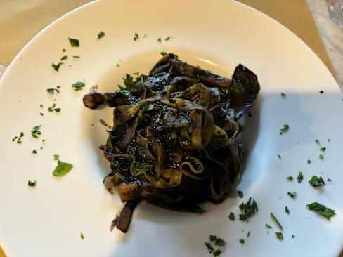 10/10Very friendly staff and delicious food (cuttlefish ink pasta). Very accommodating due to sidewalk repair and rain. Cozy atmosphere and most tables filled. Great meal overall.