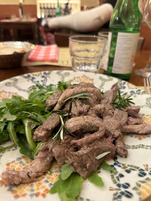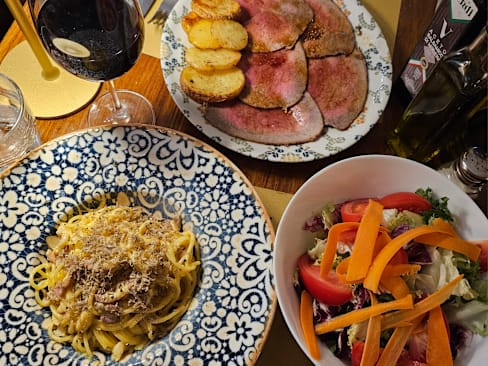 10/10🇮🇹 Amazing Local Experience at Trattoria Aentellesi – Would Definitely Return! We had such a lovely dinner at Trattoria Aentellesi in Florence — one of the best meals we had during our trip! I ordered the carbonara, and it was absolutely delicious — rich and creamy with just the right balance of cheese, egg, and black pepper. The flavor was deep but never heavy. It felt authentic and perfectly done. The sliced steak was another highlight. It was thinly cut, tender, and full of flavor — not crispy on the outside, but juicy and perfectly cooked. We paired it with a glass of red wine, and the combination was spot on. The staff helped us with the pairing, and it really elevated the meal. To finish, they offered us a shot of limoncello on the house, which was a sweet and refreshing surprise. Small touches like that made the whole experience even more memorable. Most of all, the service was incredibly kind and attentive — warm without being overbearing. You could tell they really care