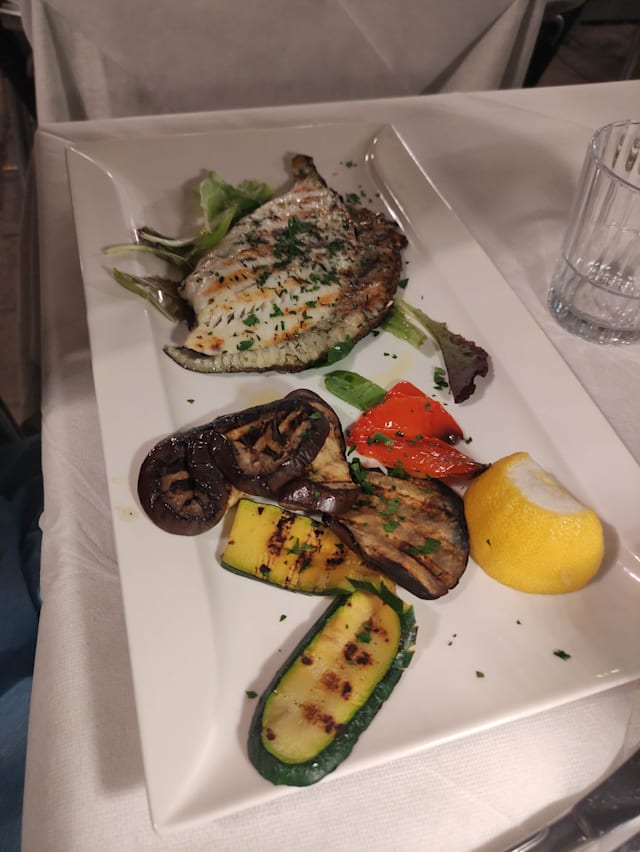7.5/10This restaurant was overall pretty tasty. We visited on a Monday evening and they were out of the buratta so we switched to caprese salad. The caprese salad was fine but the tomatoes were a bit bland and flavorless. For the mains we had the Spaghetti alla bolognese and the Filetto di Rombo Al Forno Con Patate E Verdure. The spaghetti was really tasty and enjoyable and the sauce was top notch. The Filetto di Rombo was a great option for those who like seafood but want something that is a fillet cut and not a whole fish. For those who are more adventurous with seafood they had many fish options. When we were there the service was a bit slow and we felt like we had to keep flagging down someone when we needed things. The fork discount worked smoothly and without issues. Overall the food was good and the experience enjoyable.
