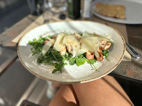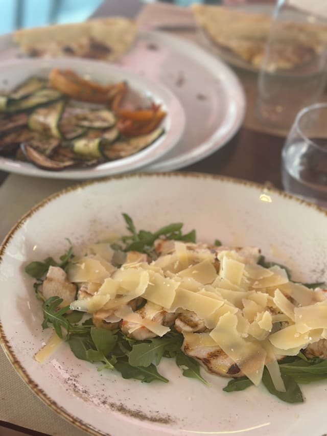 10/10Warm staff, amazing food was looking for proteing with good veggies and they hit the spot. Had to share the focaccia pizza pie, their chicken grilled in a bed of arugula and veggies.