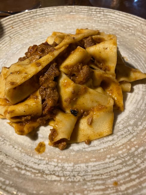 9.5/10This was our best meal while in Florence, specifically the truffle carbonara. We did not order the carbonara initially. It was brought to us by mistake, and we were so happy it was! To say we loved it would be an understatement. Great wine selection. Ambiance-wise, there were a lot of college students when we dined, so it was loud. But, that did not damper our experience. Highly recommend visiting this restaurant.