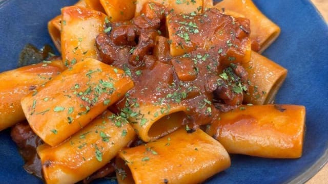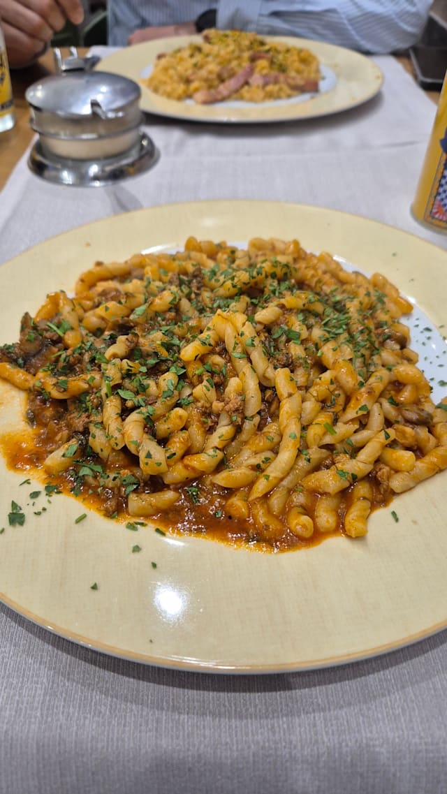 Pasta fresca con ragù di salsiccia, funghi e finocchietto di montagna