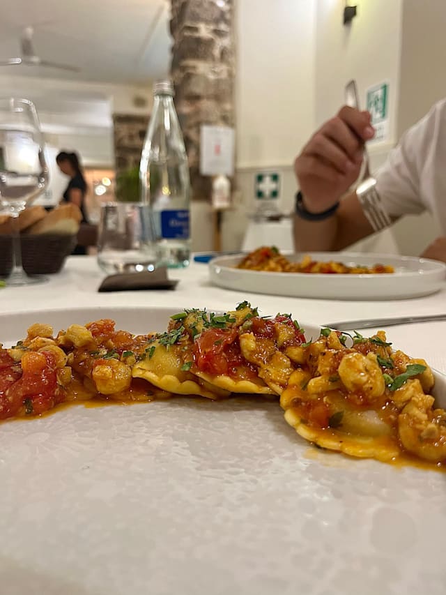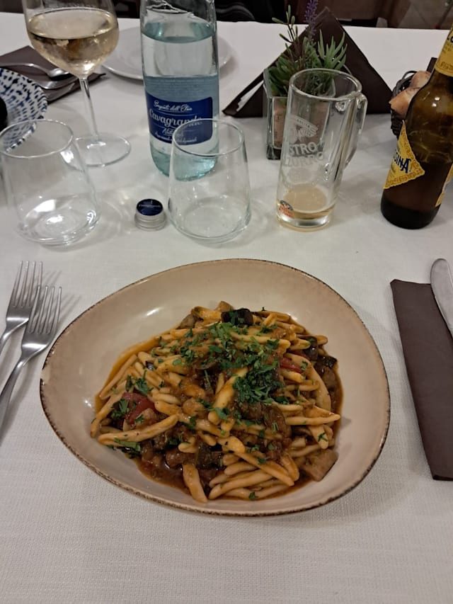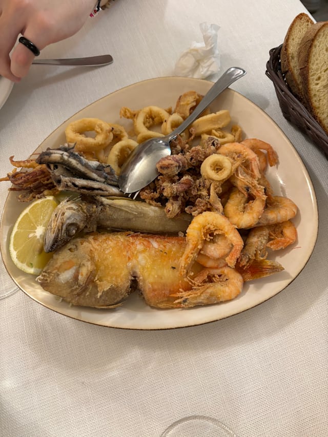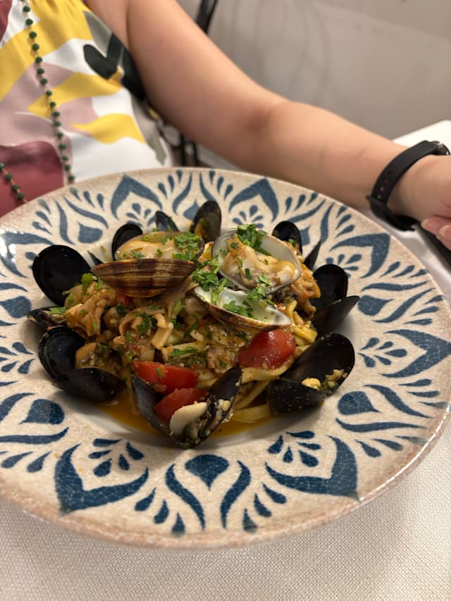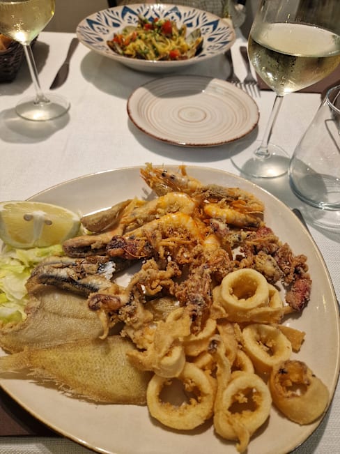 9.5/10Hidden in a small side street off via Umberto I it is a wonderful family restaurant. The staff is very friendly and efficient, the food is wonderful, flavorful and super fresh (I recommend the seafood antipasti and pasta) and the wine list is short but well-chosen with nice local wines at very reasonable prices. Among the desserts the chocolate cake is amazing. The music was just a bit too loud. But all in all, a wonderful relaxing gastronomical experience !