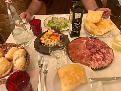 9/10Absolutely love the ambiance & food! Service is challenged. We ordered a bottle of our favorite local red wine and the waitress walked up to the table with an open bottle (didn't open it at the table nor show us the bottle first to ensure it is what we asked for) started pouring, and it was an unknown WHITE wine. We just went with it and still received a perplexing attitude look from her. They have the best Torta Frita in town. Delicious OssoBuco, and anolini in brado! We have been here several times. Book reservations in advance.